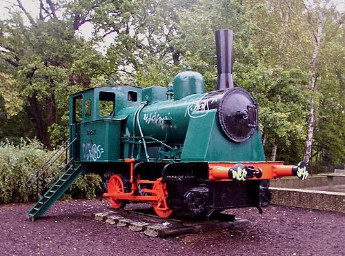 Spielplatz, Titusweg: Als Peter Ziegenfuß die Lok am 26. April 1991 ablichtete, da fehlte der der Lok der Schornstein.