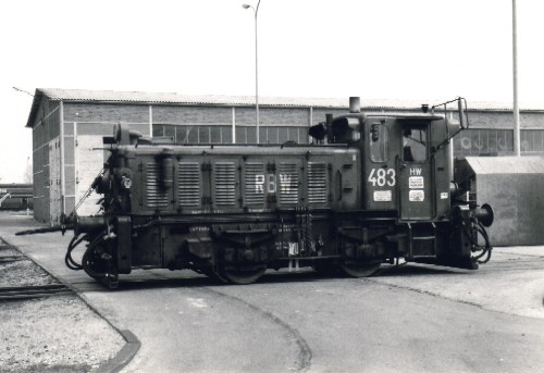 RBW: RBW 485 (Gmeinder 5633) in der Hauptwerkstadt Frechen-Grefrath (Foto: 11.05.1985, Peter Ziegenfuss)