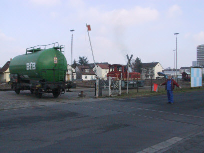 .2001/ hh/ Die Werkbahn der Bundesmonopolverwaltung für Branntwein in Neu Isenburg weist eine heute fast gänzlich aufgegebene Rangiertechnik auf: