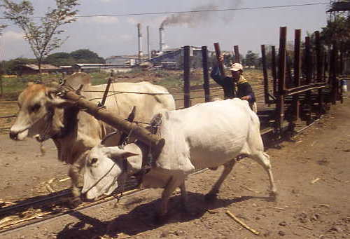 PG Pesantren: Für Rangierfahrten werden auch heute noch Ochsen eingesetzt. (Foto: Philipp Kurasch)